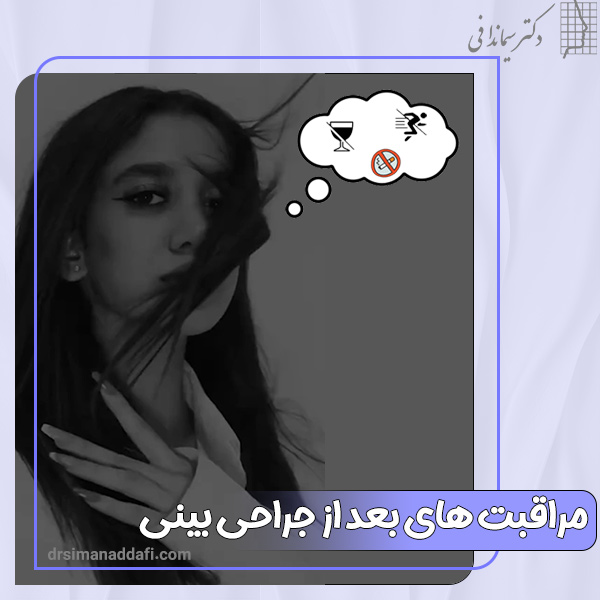 - بیماران تا مدتی بعد از جراحی بینی باید از باز کردن دهان ( خمیازه های بزرگ ) و حرف زدن طولانی مدت خودداری نمایند.